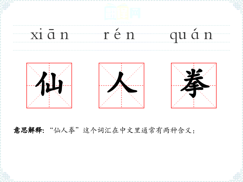 “仙人拳”这个词汇在中文里通常有两种含义: