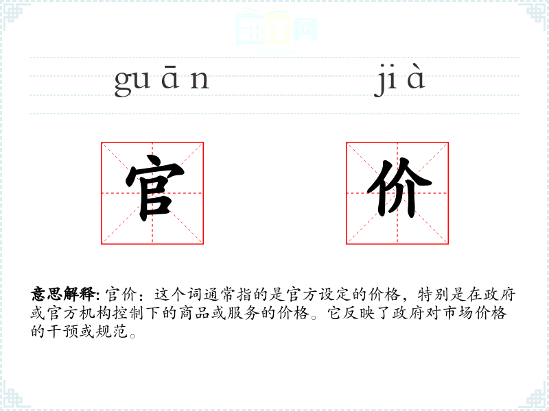 官价:这个词通常指的是官方设定的价格,特别是在政府或官方机构控制下的商品或服务的价格。它反映了政府对市场价格的干预或规范。