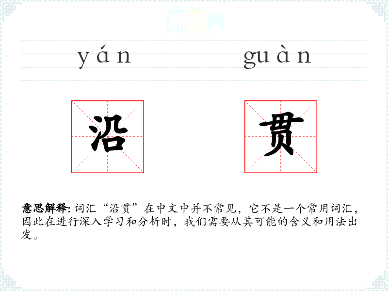 词汇“沿贯”在中文中并不常见,它不是一个常用词汇,因此在进行深入学习和分析时,我们需要从其可能的含义和用法出发。