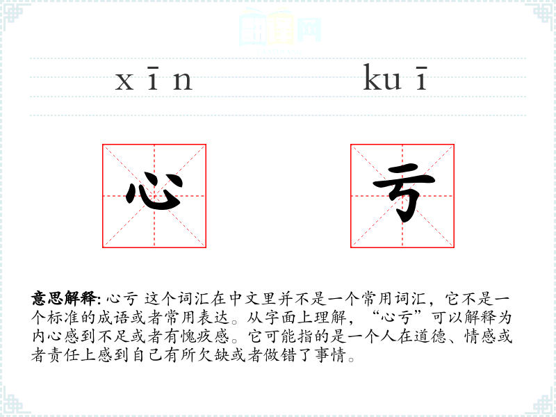 “心亏”这个词汇虽然不常用,但它能够准确地表达一种特定的心理状态,即内心的愧疚和不足感。在语言学*和表达中,了解这样的词汇可以帮助我们更丰富地表达自己的情感和思想。