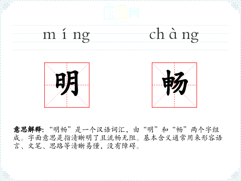 “明畅”一词给人以积极、正面的情感反应,联想到清晰、顺畅、无障碍的交流和理解。在思维和表达中,它鼓励人们追求清晰和逻辑性。
