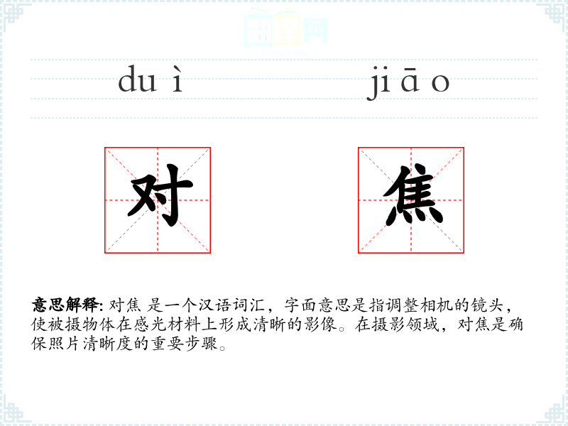 "对焦"的意思解释、对焦是什么意思由翻译网汉语词典查词提供。