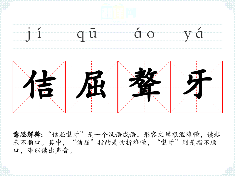 "佶屈聱牙"的意思解释、佶屈聱牙是什么意思由翻译网汉语词典查词提供。