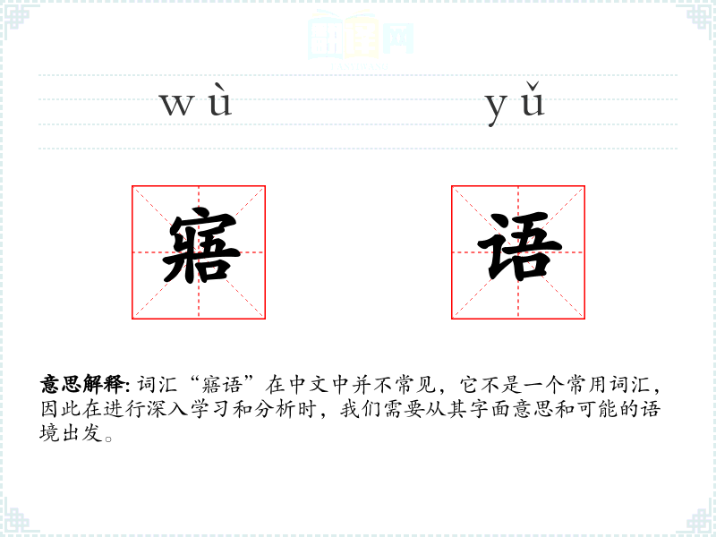 词汇“寤语”在中文中并不常见,它不是一个常用词汇,因此在进行深入学*和分析时,我们需要从其字面意思和可能的语境出发。