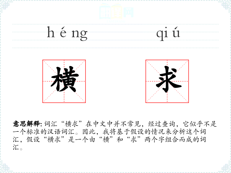 假设“横求”的字面意思是指广泛地寻求或请求。其中,“横”可能表示广泛、横向的,而“求”则表示寻求、请求。