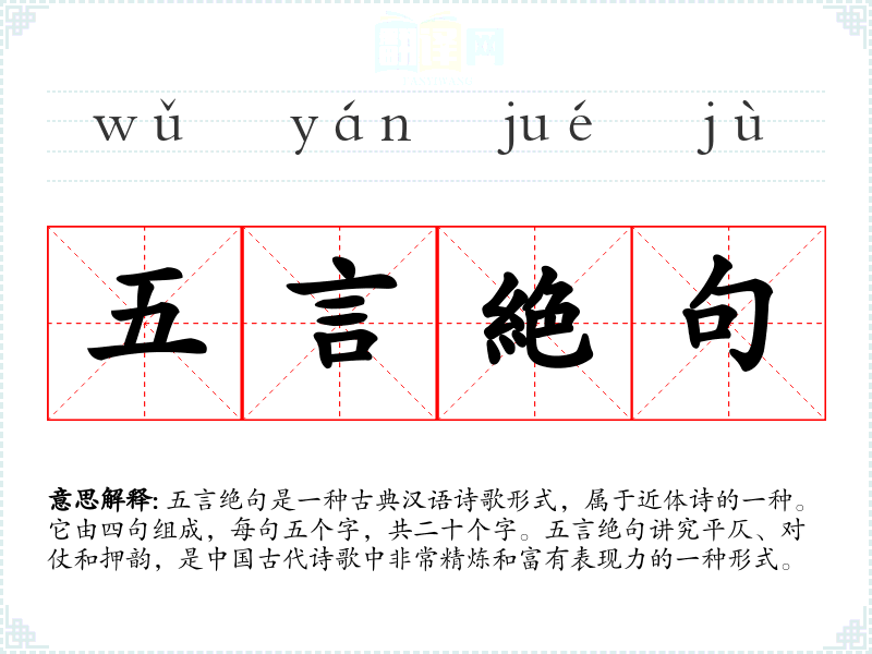 "五言絶句"的意思解释、五言絶句是什么意思由翻译网汉语词典查词提供。