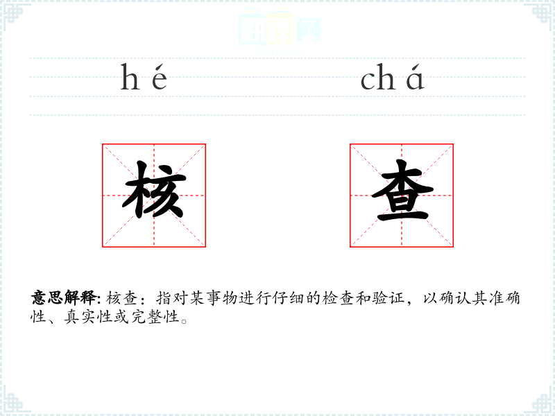 核查:指对某事物进行仔细的检查和验证,以确认其准确性、真实性或完整性。