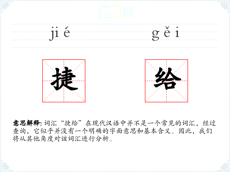 词汇“捷给”在现代汉语中并不是一个常见的词汇,经过查询,它似乎并没有一个明确的字面意思和基本含义。因此,我们将从其他角度对该词汇进行分析。