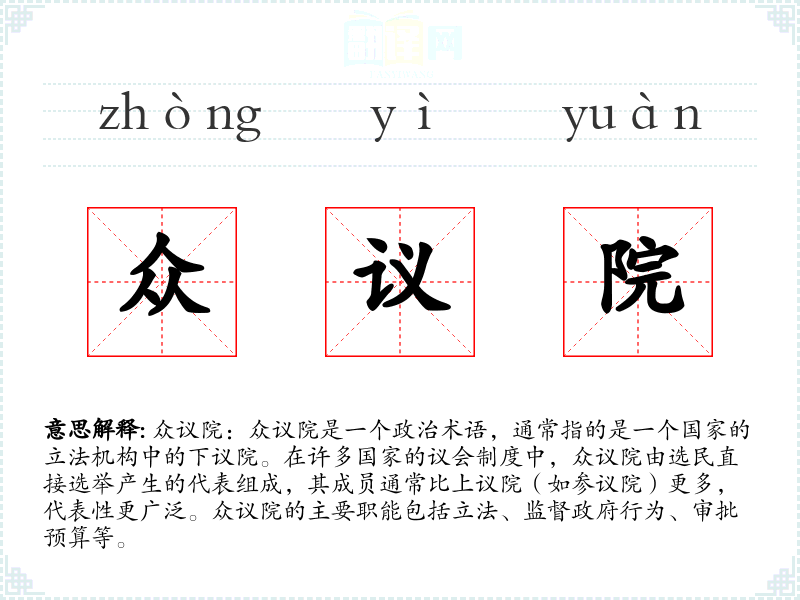 - 专业领域:在政治学、法律学和国际关系等领域,众议院是一个重要的研究对象,涉及其结构、功能、历史和运作机制。
