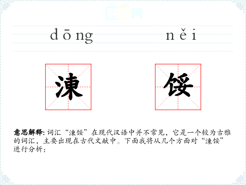 词汇“涷馁”在现代汉语中并不常见,它是一个较为古雅的词汇,主要出现在古代文献中。下面我将从几个方面对“涷馁”进行分析: