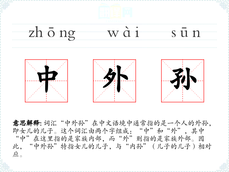 - 字面意思:“中外孙”字面意思是“外部的孙子”。