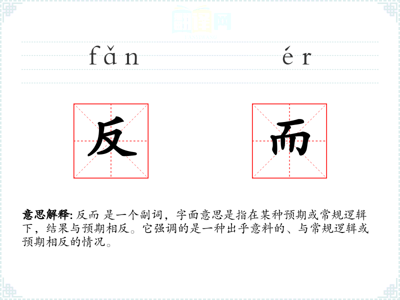 反而 是一个副词,字面意思是指在某种预期或常规逻辑下,结果与预期相反。它强调的是一种出乎意料的、与常规逻辑或预期相反的情况。