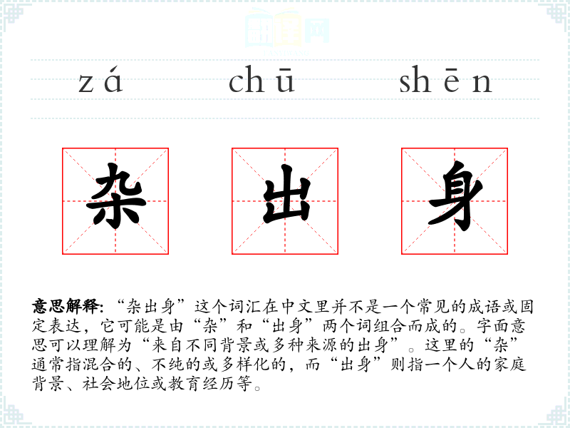 “杂出身”这个词汇虽然不是一个标准表达,但它提供了一个有趣的角度来思考和讨论多样性和包容性。在语言学习和表达中,它提醒我们重视每个人的独特背景和经历,以及这些背景如何丰富我们的社会和文化。