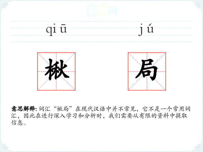 词汇“楸局”在现代汉语中并不常见,它不是一个常用词汇,因此在进行深入学习和分析时,我们需要从有限的资料中提取信息。