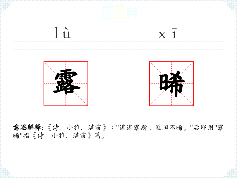 《诗.小雅.湛露》﹕"湛湛露斯﹐匪阳不晞。"后即用"露晞"指《诗.小雅.湛露》篇。