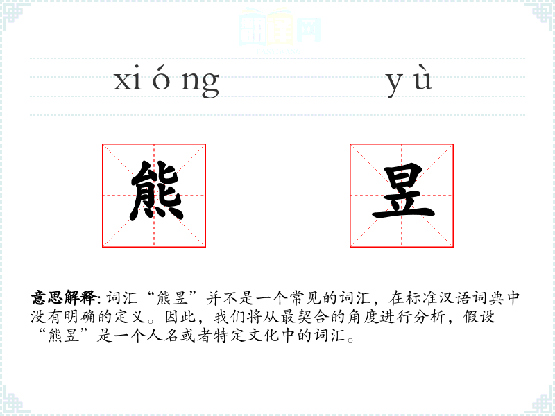 由于“熊昱”不是一个标准词汇,我们对它的理解主要基于假设它是一个人名。在语言学习和表达中,了解特定词汇的背景和语境是非常重要的。