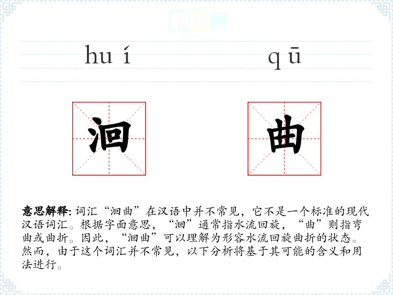 词汇“洄曲”在汉语中并不常见,它不是一个标准的现代汉语词汇。根据字面意思,“洄”通常指水流回旋,“曲”则指弯曲或曲折。因此,“洄曲”可以理解为形容水流回旋曲折的状态。然而,由于这个词汇并不常见,以下分析将基于其可能的含义和用法进行。