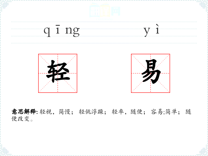 轻视,简慢; 轻佻浮躁; 轻率,随便; 容易;简单; 随便改变。