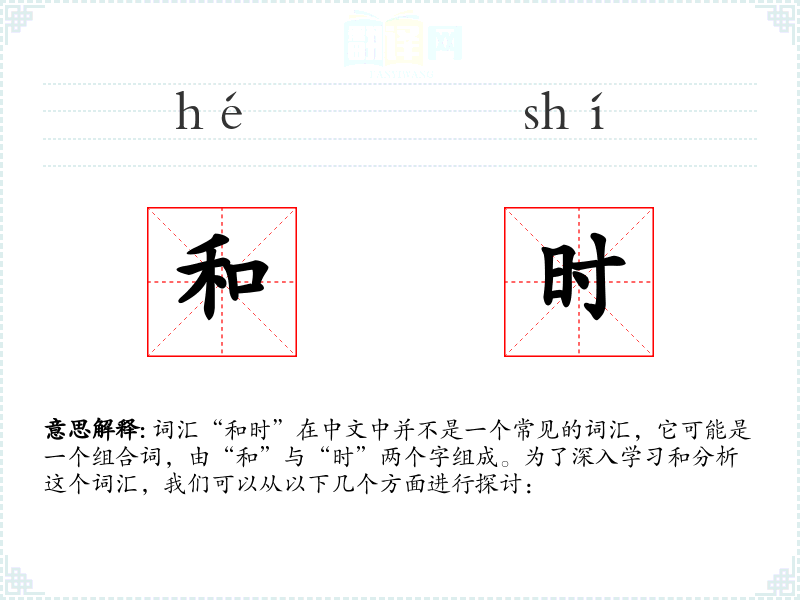由于“和时”不是一个常用词汇,上述分析可能包含了一些假设和推测。在实际使用中,可能需要根据具体语境来确定其确切含义。
