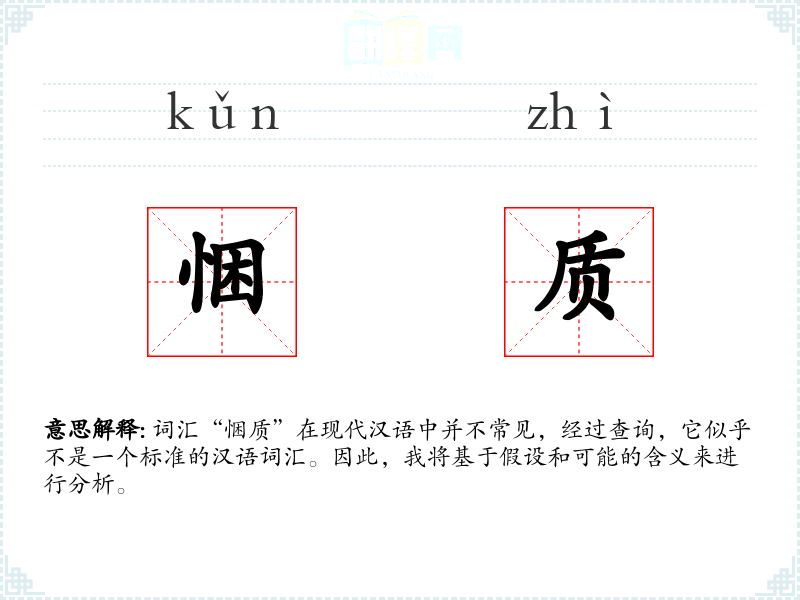 词汇“悃质”在现代汉语中并不常见,经过查询,它似乎不是一个标准的汉语词汇。因此,我将基于假设和可能的含义来进行分析。