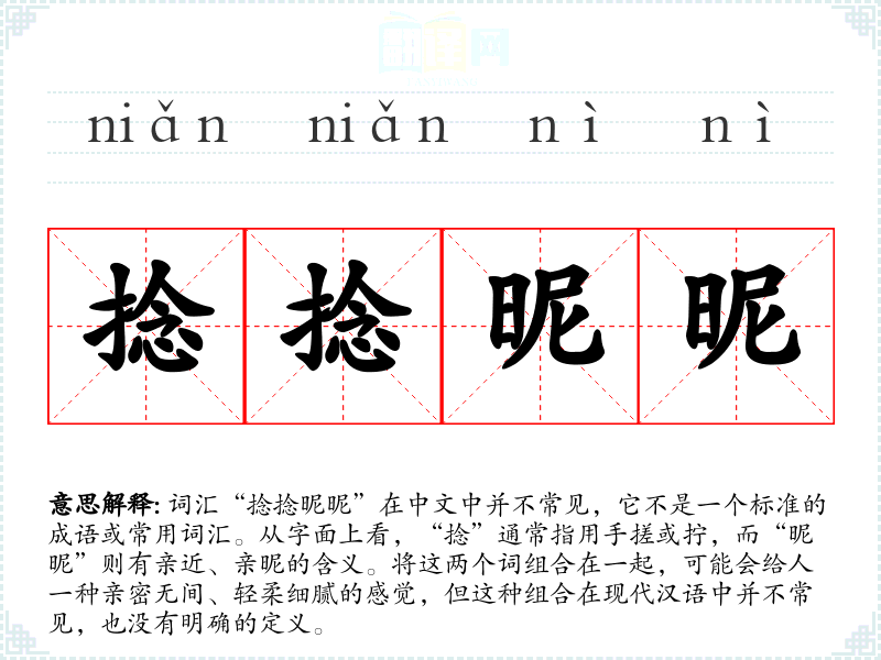 由于“捻捻昵昵”不是一个标准词汇,我们无法给出一个确切的基本定义。它可能是某个方言中的词汇,或者是某个特定社群中的俚语。
