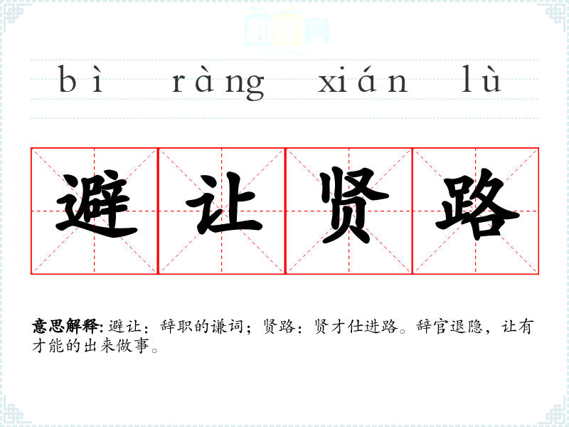 避让:辞职的谦词;贤路:贤才仕进路。辞官退隐,让有才能的出来做事。