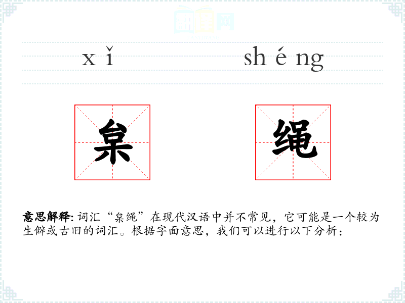 词汇“枲绳”在现代汉语中并不常见,它可能是一个较为生僻或古旧的词汇。根据字面意思,我们可以进行以下分析: