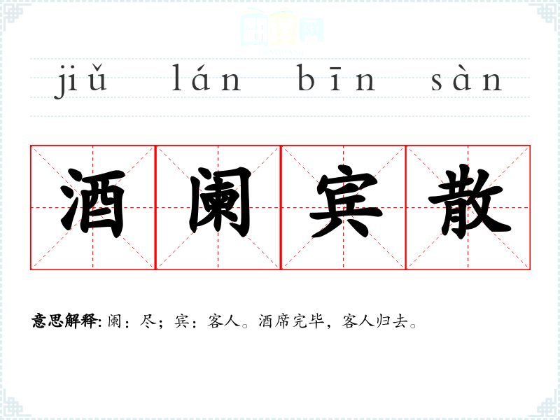 酒阑宾散的分字解释