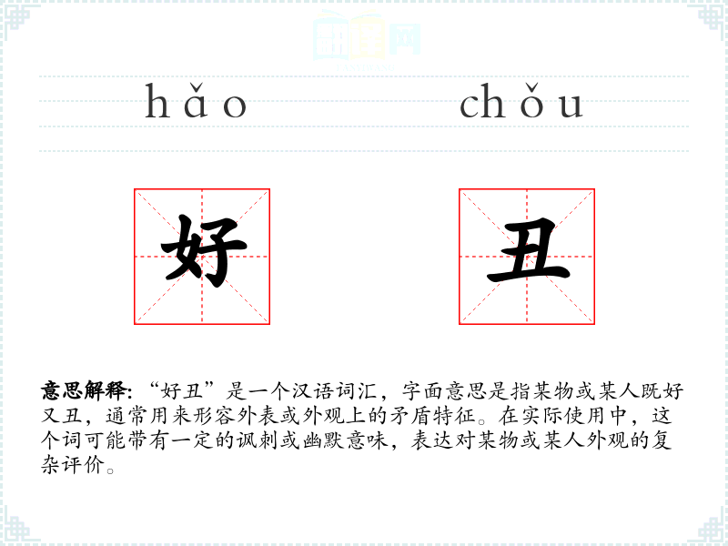 “好丑”作为一个词汇,其词源较为直接,由“好”和“丑”两个字组合而成。在汉语中,“好”通常表示正面、积极的评价,而“丑”则表示负面、消极的评价。两者的结合,形成了这个词汇独特的含义。