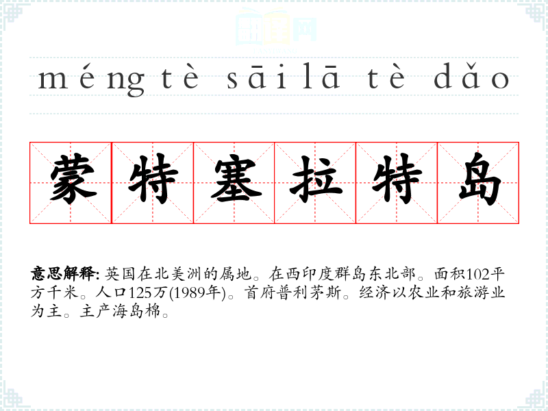"蒙特塞拉特岛"的意思解释、蒙特塞拉特岛是什么意思由翻译网汉语词典查词提供。