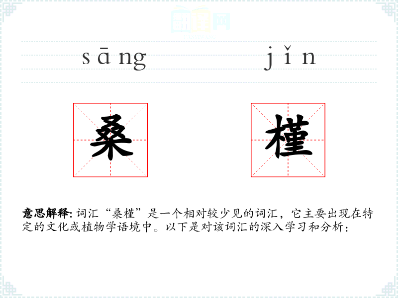 通过对“桑槿”这个词汇的学和分析,我更加深入地理解了它在特定文化和社会背景中的意义和影响。这个词汇不仅代表了一种植物,还承载了丰富的文化和情感内涵,对于我的语言学和表达有着重要的意义。