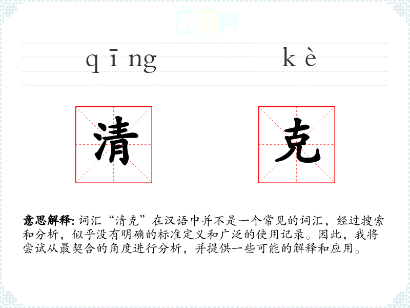 由于“清克”不是一个标准词汇,我们可以尝试从字面意思来解释: