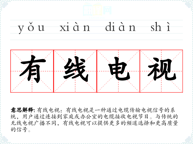 "有线电视"的意思解释、有线电视是什么意思由翻译网汉语词典查词提供。