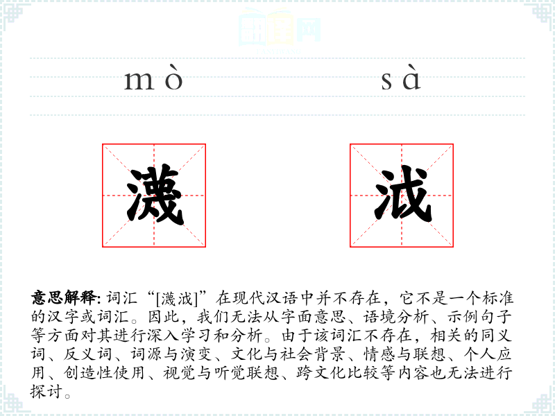 词汇“[瀎泧]”在现代汉语中并不存在,它不是一个标准的汉字或词汇。因此,我们无法从字面意思、语境分析、示例句子等方面对其进行深入学习和分析。由于该词汇不存在,相关的同义词、反义词、词源与演变、文化与社会背景、情感与联想、个人应用、创造性使用、视觉与听觉联想、跨文化比较等内容也无法进行探讨。