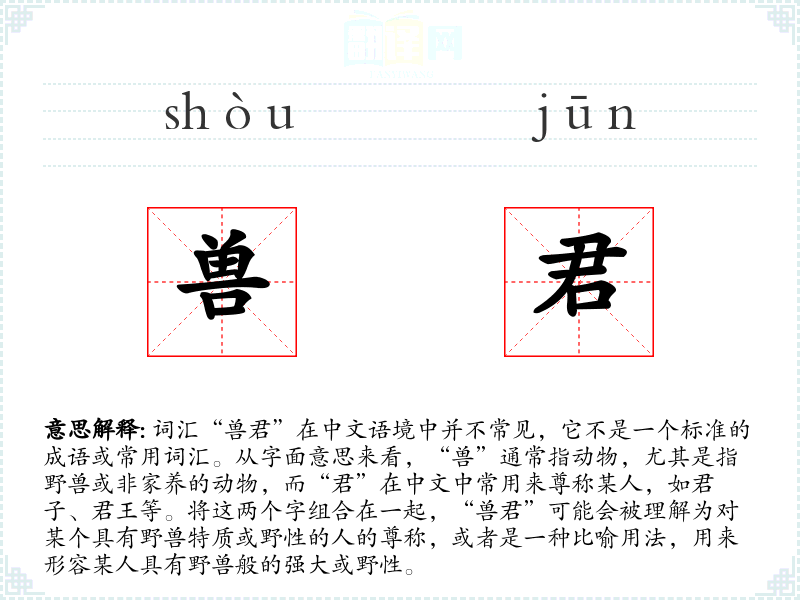"兽君"的意思解释、兽君是什么意思由翻译网汉语词典查词提供。