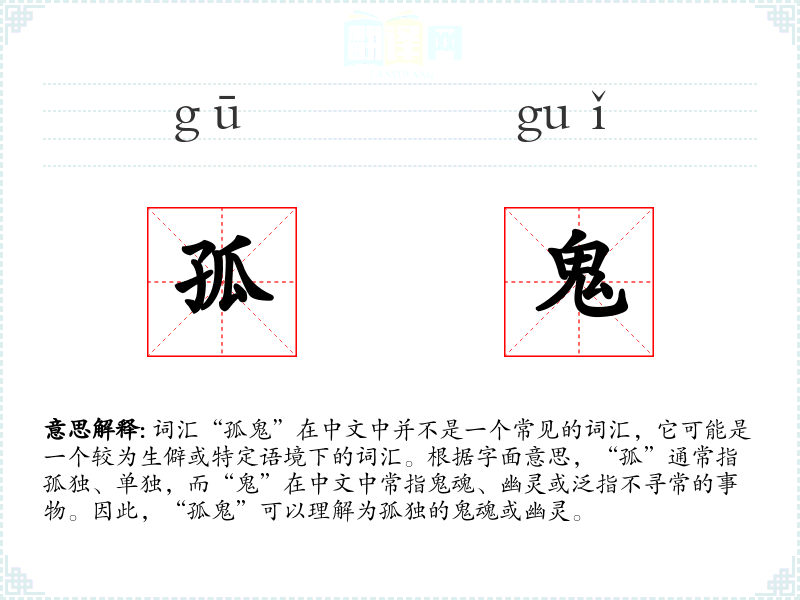 - 同义词:孤魂、孤灵、孤独的幽灵