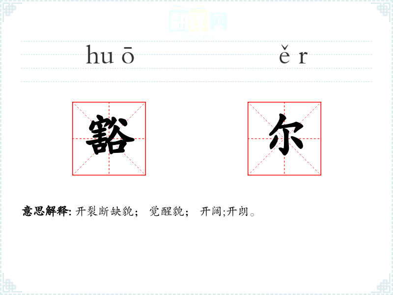 开裂断缺貌; 觉醒貌; 开阔;开朗。