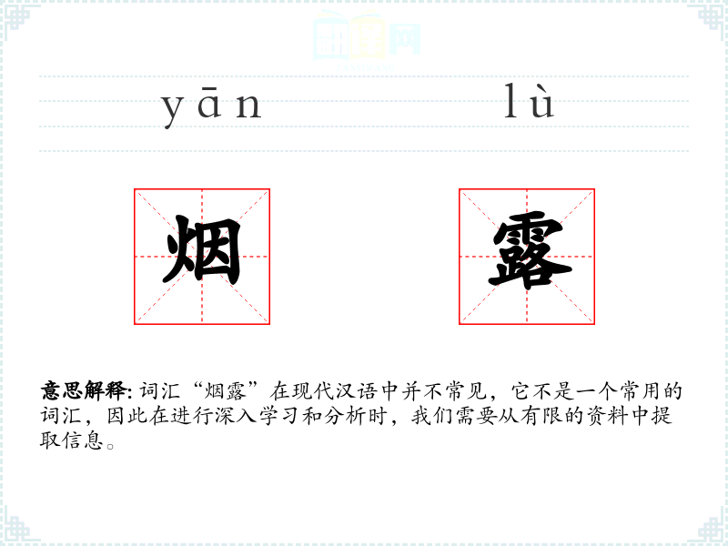 词汇“烟露”在现代汉语中并不常见,它不是一个常用的词汇,因此在进行深入学习和分析时,我们需要从有限的资料中提取信息。