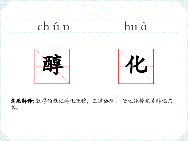 敦厚的教化醇化既穆,王道协隆; 使之纯粹完美醇化艺术。