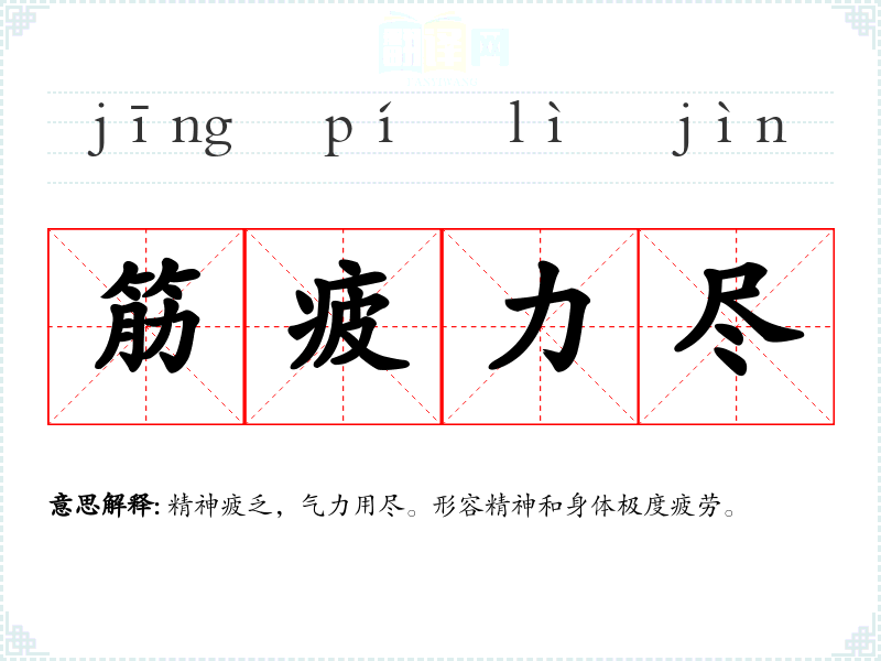 筋疲力尽的分字解释