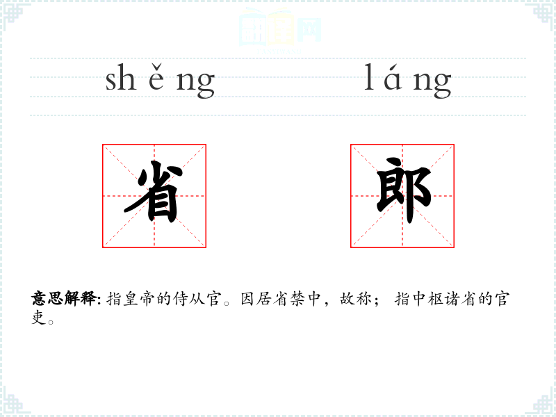 指皇帝的侍从官。因居省禁中,故称; 指中枢诸省的官吏。
