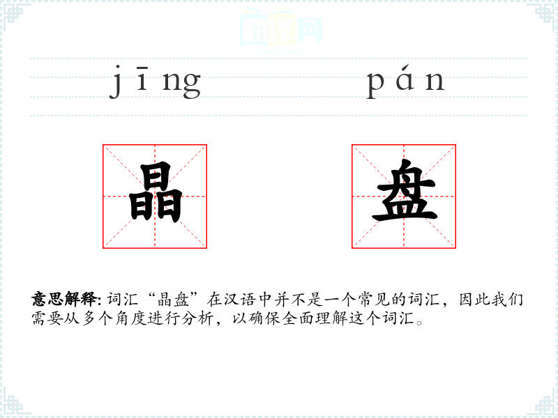 词汇“晶盘”在汉语中并不是一个常见的词汇,因此我们需要从多个角度进行分析,以确保全面理解这个词汇。