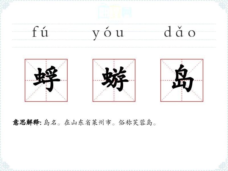 岛名。在山东省莱州市。俗称芙蓉岛。