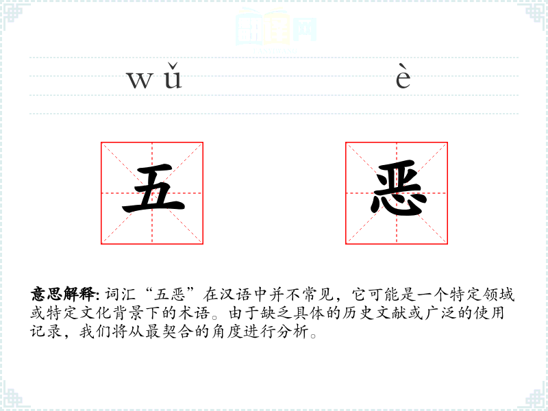 词汇“五恶”在汉语中并不常见,它可能是一个特定领域或特定文化背景下的术语。由于缺乏具体的历史文献或广泛的使用记录,我们将从最契合的角度进行分析。