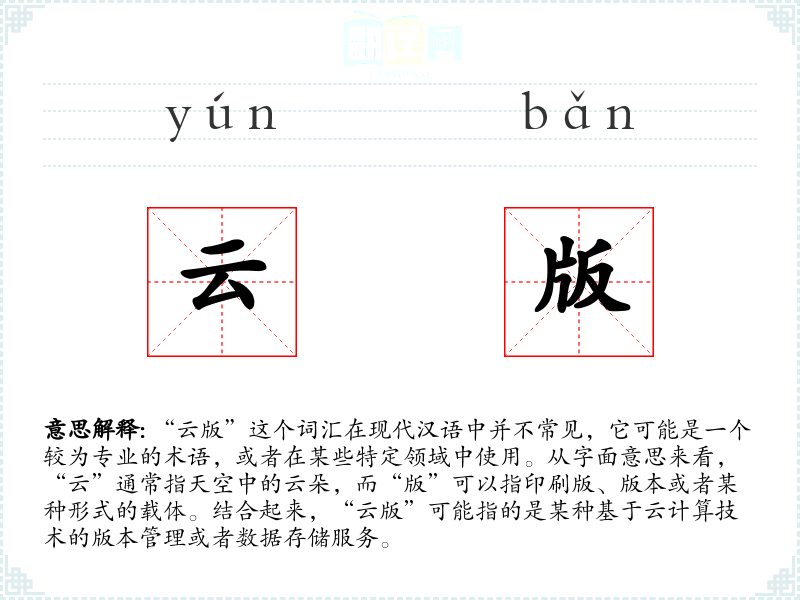 - 专业领域:在信息技术领域,“云版”可能指的是基于云服务的软件版本,如“云版办公软件”。