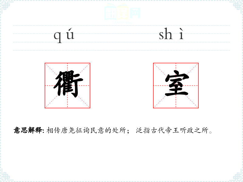 相传唐尧征询民意的处所; 泛指古代帝王听政之所。