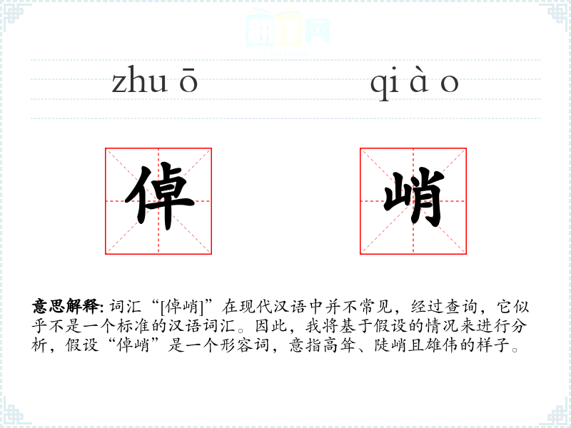- 由于“倬峭”不是一个标准词汇,跨文化比较可能不适用。