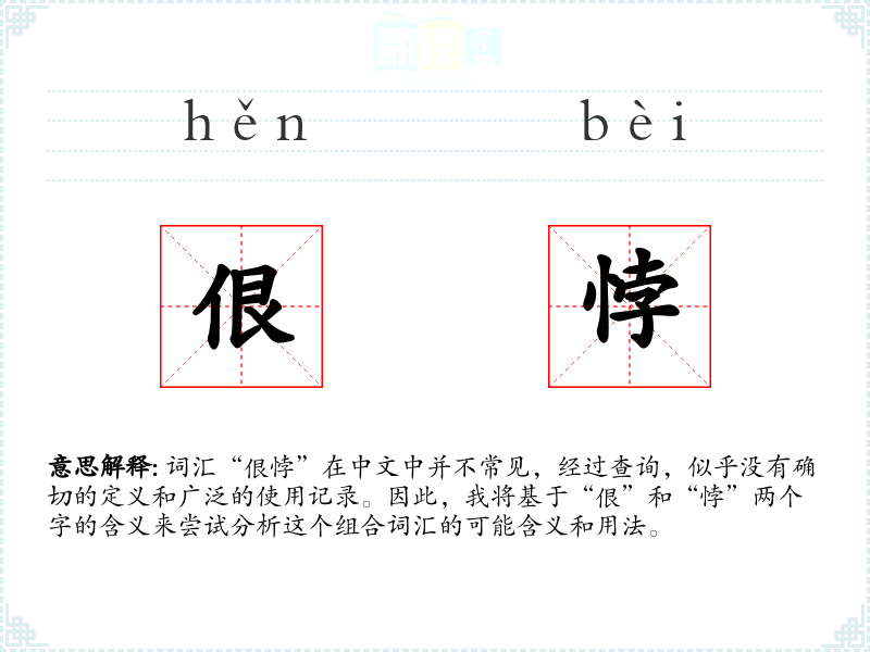 词汇“佷悖”在中文中并不常见,经过查询,似乎没有确切的定义和广泛的使用记录。因此,我将基于“佷”和“悖”两个字的含义来尝试分析这个组合词汇的可能含义和用法。