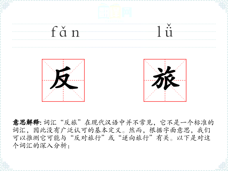 "反旅"的意思解释、反旅是什么意思由翻译网汉语词典查词提供。