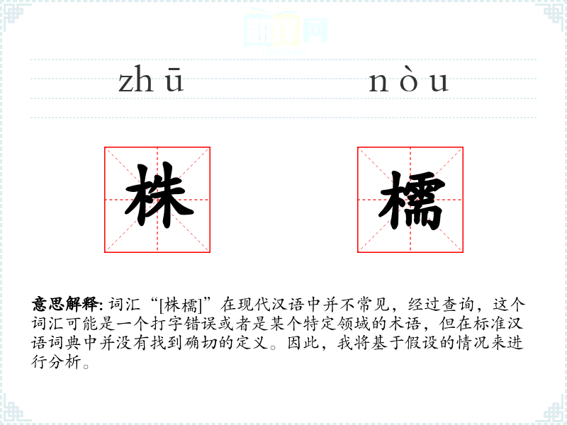由于“[株檽]”不是一个标准词汇,我们对它的理解主要基于假设和推测。在语言学习和表达中,了解词汇的准确含义和使用场景是非常重要的,这有助于我们更准确地沟通和表达。